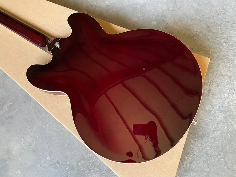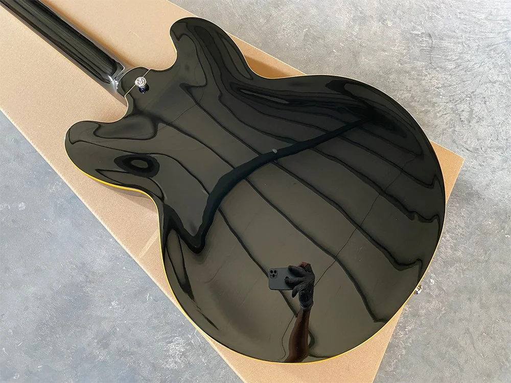 Our skilled team, especially in the painting and finishing departments, ensures the highest standards. We use premium South Korean paints to achieve a glossy, saturated finish that enhances the guitar’s visual appeal. The quality of our craftsmanship is evident and cannot be fully appreciated in photos alone