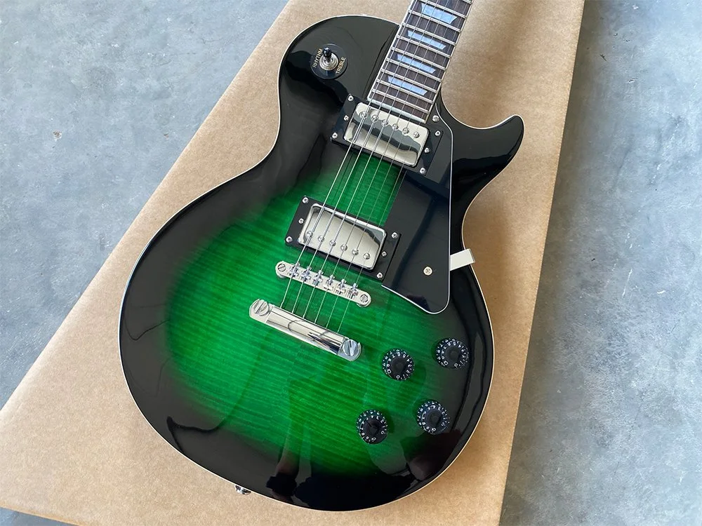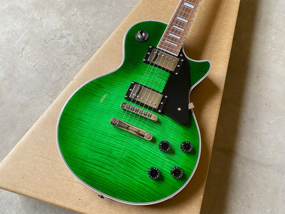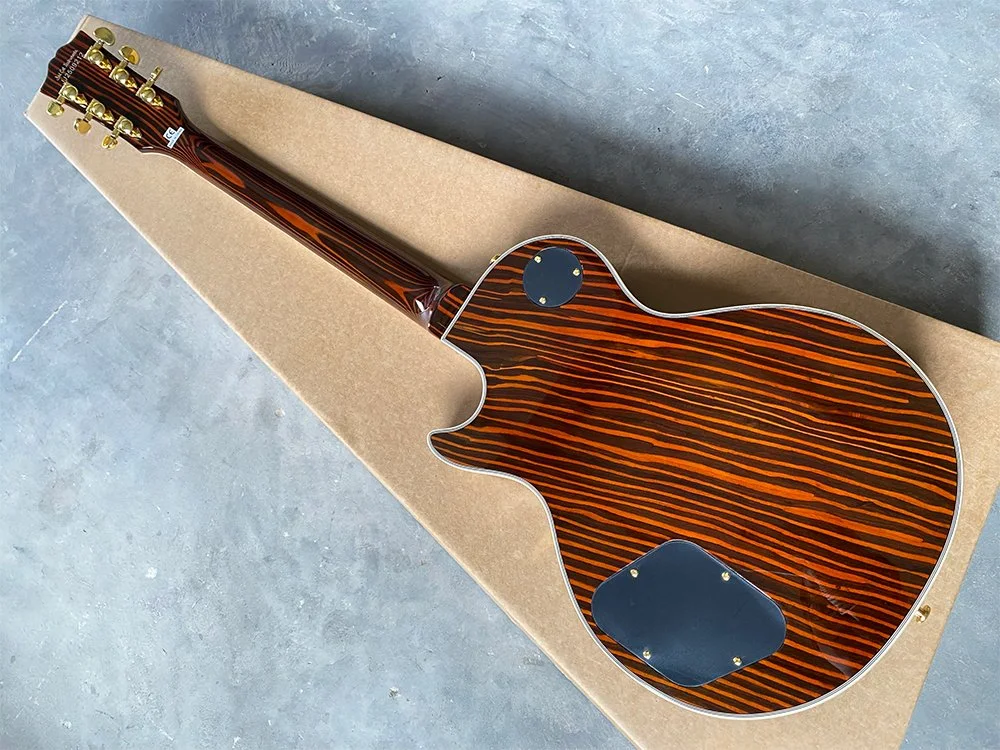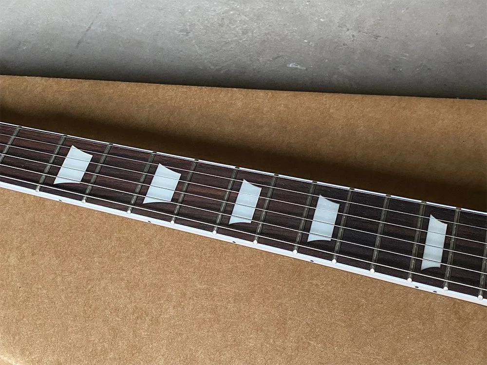 We meticulously select only the highest quality raw woods. For the neck and body, we use carefully roasted mahogany to ensure durability and superior tone. Our fingerboards are crafted from the finest Indian rosewood, renowned for its striking grain and stunning appearance—evident even in the photos. Additionally, we feature a top-quality 5A grade maple veneer, chosen for its exceptional beauty and finish.