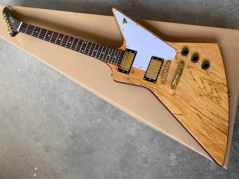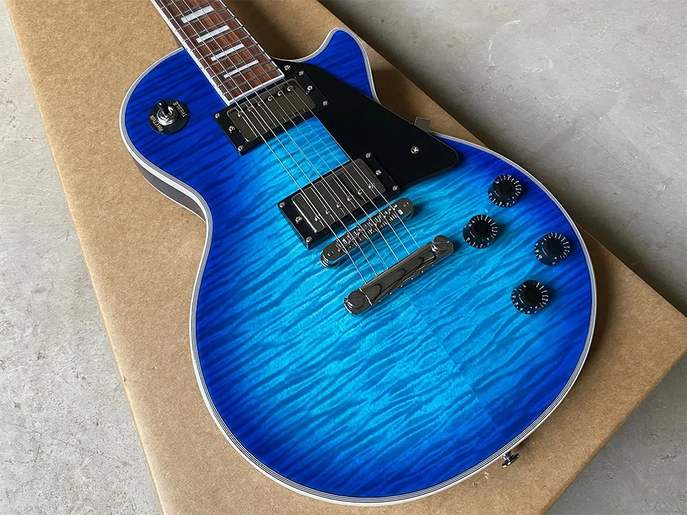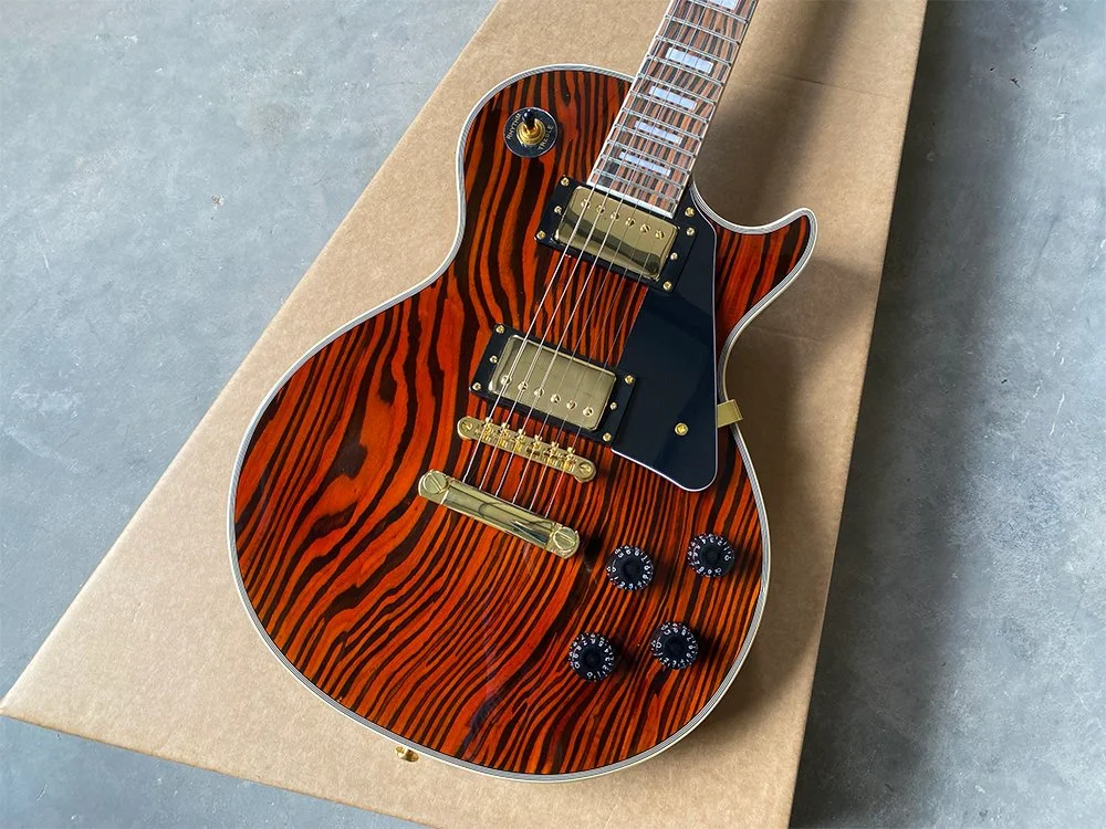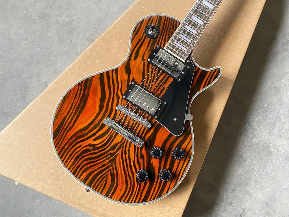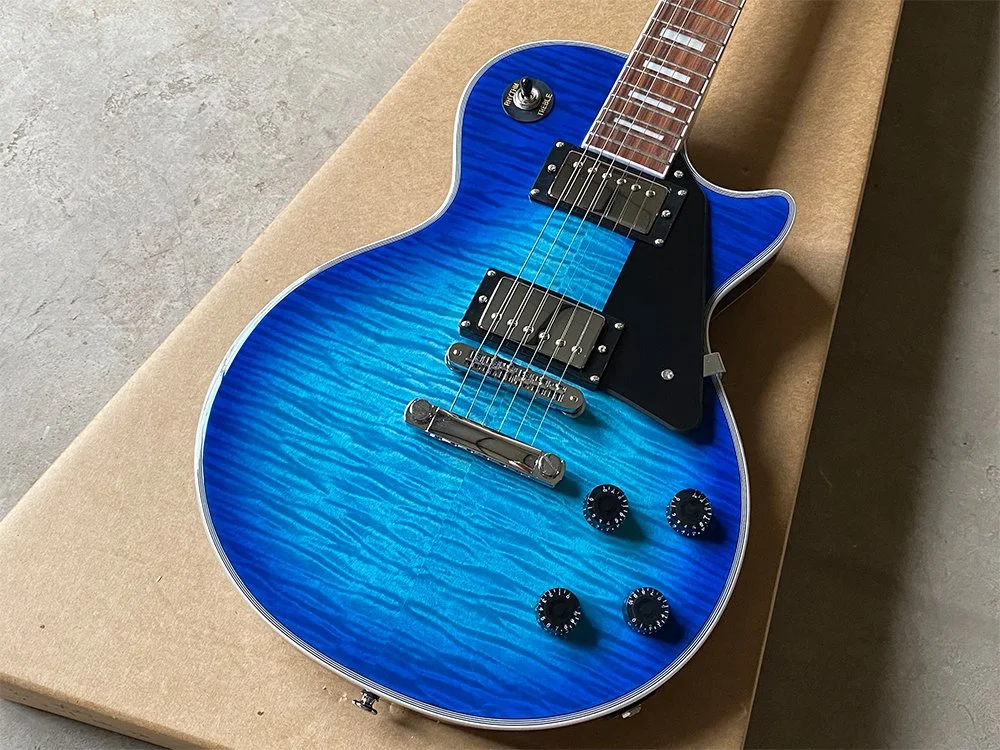 We meticulously select only the highest quality raw woods. For the neck and body, we use carefully roasted mahogany to ensure durability and superior tone. Our fingerboards are crafted from the finest Indian rosewood, renowned for its striking grain and stunning appearance—evident even in the photos. Additionally, we feature a top-quality 5A grade maple veneer, chosen for its exceptional beauty and finish.