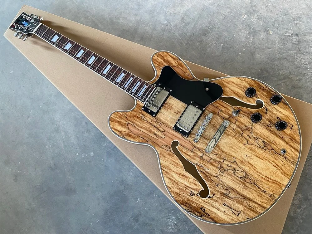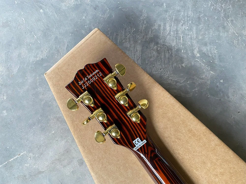 We source our hardware from reputable manufacturers to guarantee reliability. Our tuners boast a precise 1:21 gear ratio for smooth tuning stability. The Nashville-style TOM bridge provides excellent intonation and ease of adjustment. The electronics are supplied by a top South Korean manufacturer, featuring high-quality switches, wiring, and 500K full-size potentiometers. Our custom Alnico V pickups deliver exceptional sound clarity and output, setting them apart from standard options.